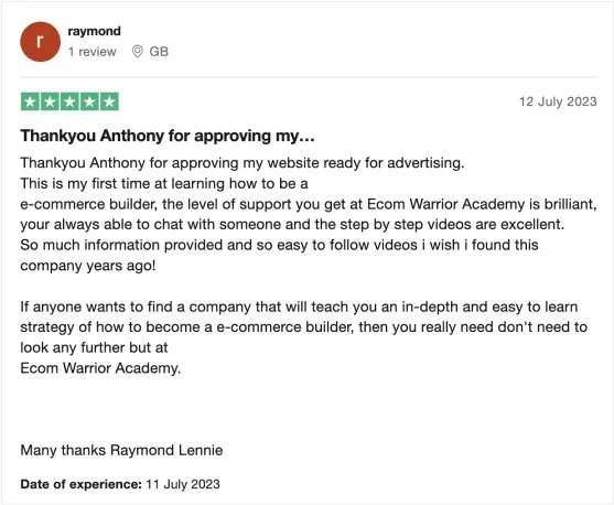 Ecom Warrior Academy and Matthew Lepre are not responsible for your actions. You are solely responsible for your own moves and decisions and the evaluation and use of our products and services should be based on your own due diligence. You agree that the Ecom Warrior Academy Programs are not liable to you in any way for your results in using our products and services. See our Terms of Service for our full disclaimer of liability and other restrictions.